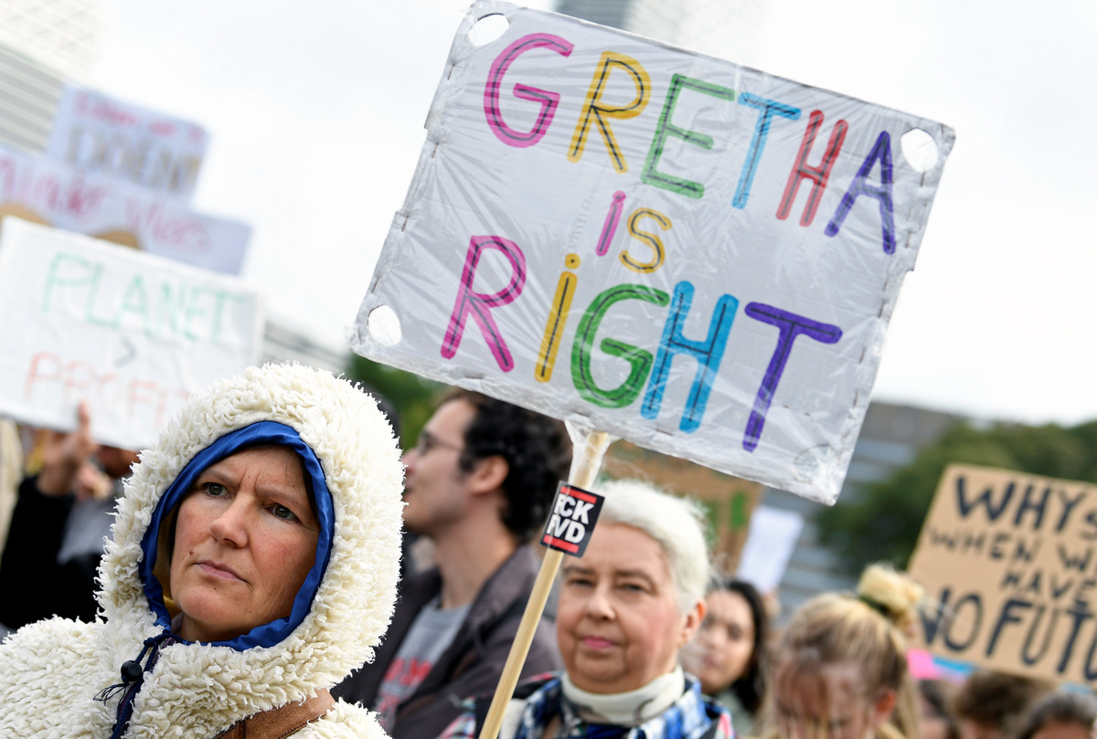 Banging drums and holding pictures of Thunberg, protesters walked through the city center with placards reading: "For the Greta good", "Don't be a fossil fool," and "You will die of old age, we will die of climate change."