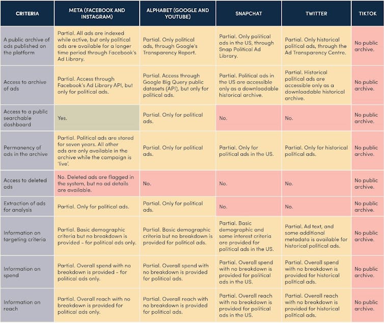 Platforms also fail to provide contextual information for advertisements, such as advertising spend and reach, or how advertisements are being targeted.