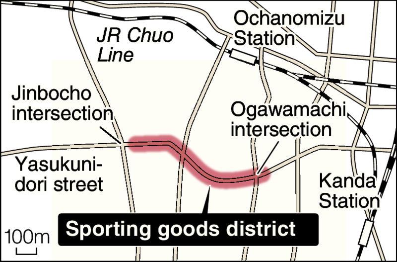 Sporting goods stores began to emerge in Kanda in the booming years from 1955 to 64, according to Kadoya, who also chairs an association of local sports shops.