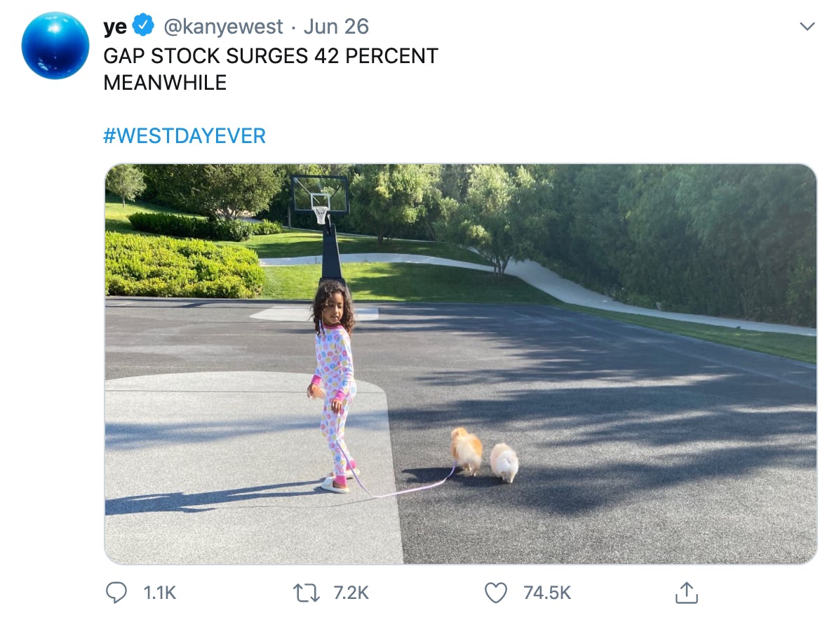 West has returned with a chokehold on the spotlight in recent weeks because of his announced partnership with Gap and declared intentions to run for president. Read most cynically, the latter development suggests his album is indeed on the way. But if he truly does intend to run against his buddy Trump for the nation's highest office, what does it say that a purported billionaire is borrowing money from the government to keep their business afloat? (In addition to everything else that would seemingly disqualify a Kanye West presidency.)