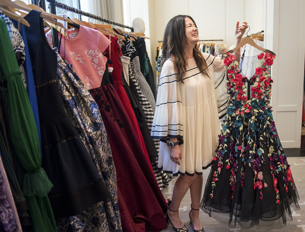 Part of the excitement is that women can buy the same dresses paraded by celebrities on the red carpet. (People.com posted photos of a staffer in looks worn by Kendall Jenner and Jessica Chastain.) "Hamilton" creator Lin Manuel Miranda helped his mom pick out an Escada dress to wear to the 2017 Oscars from the Armarium collection.