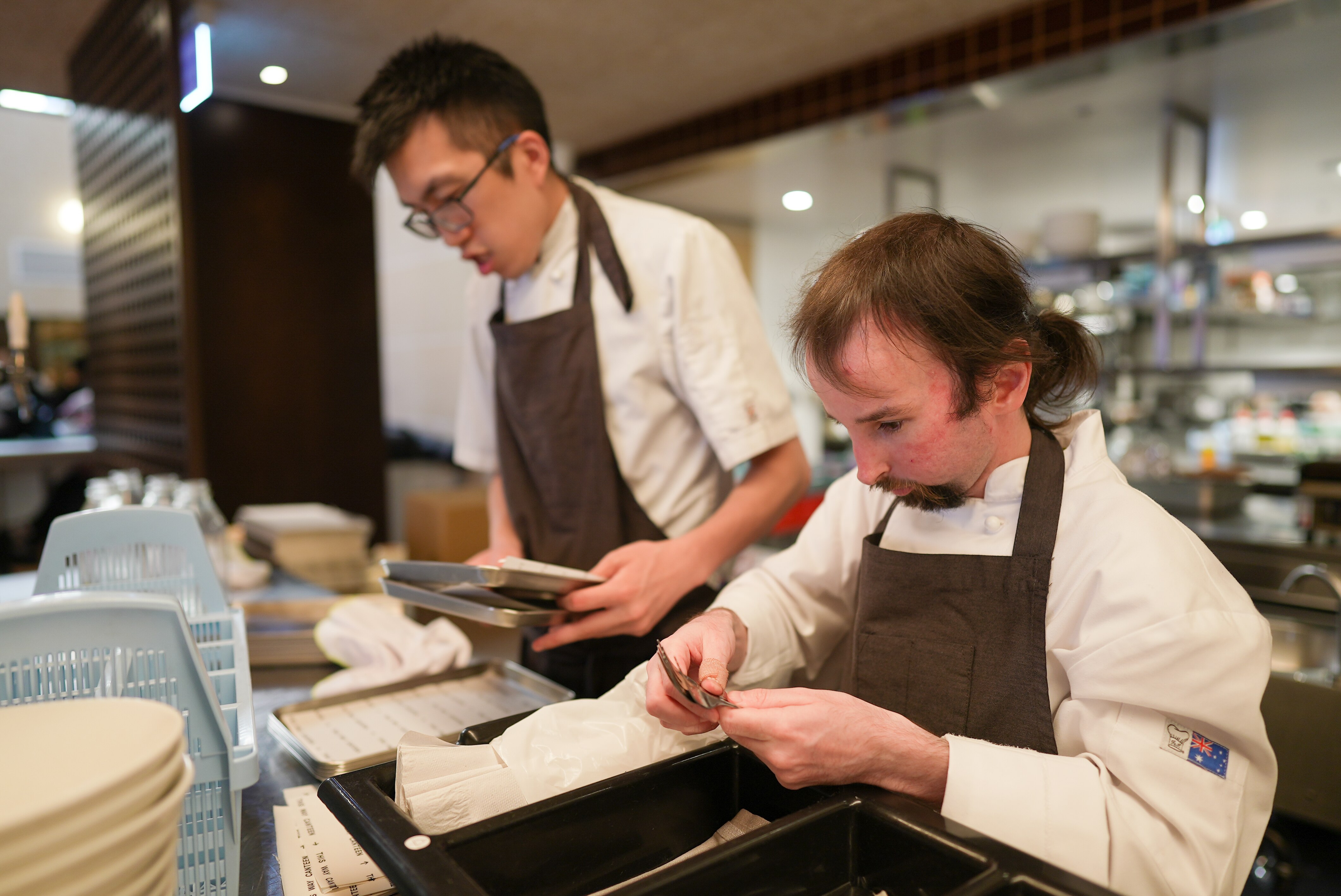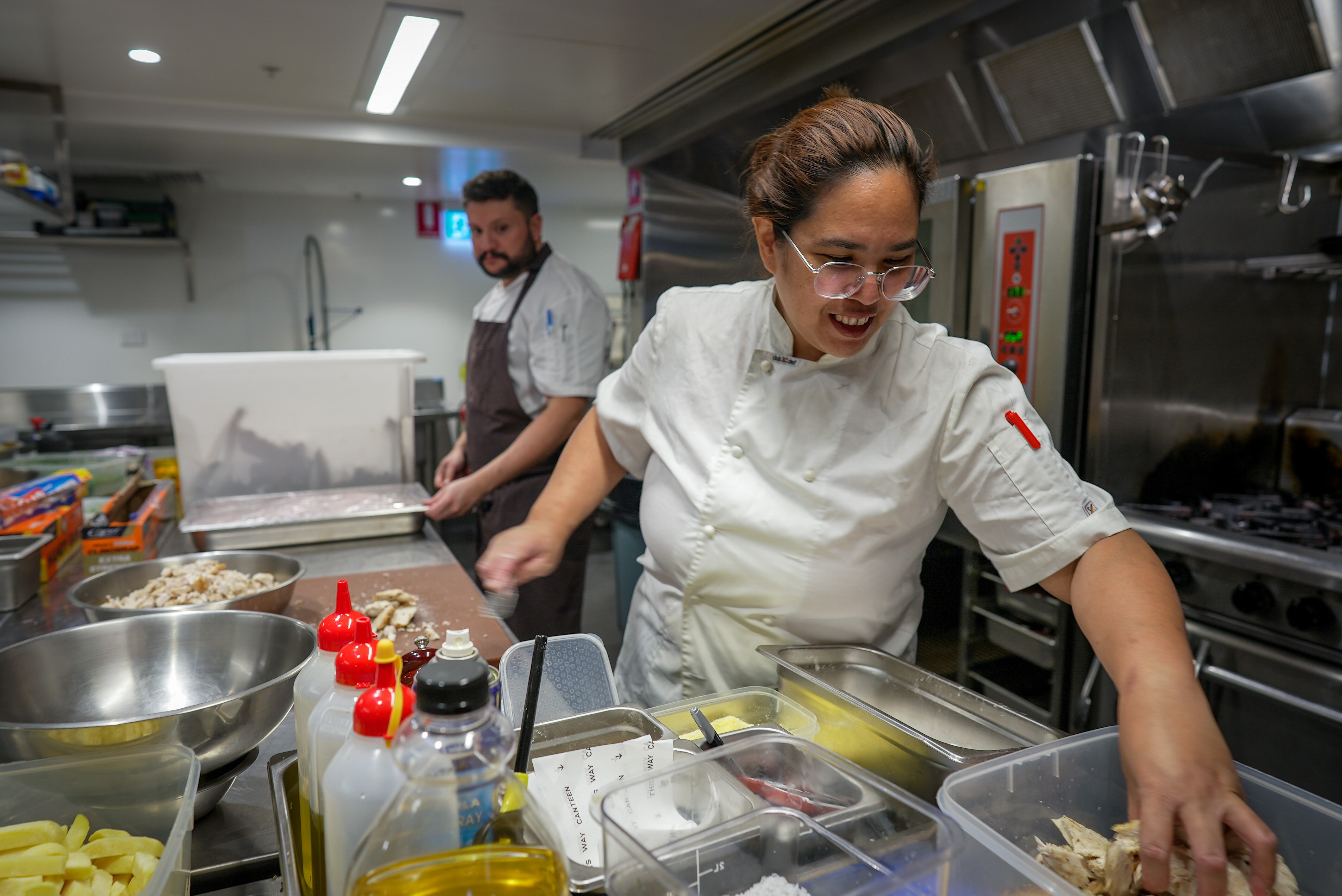 The two men work as preparation chefs, organising ingredients for use in the kitchens.