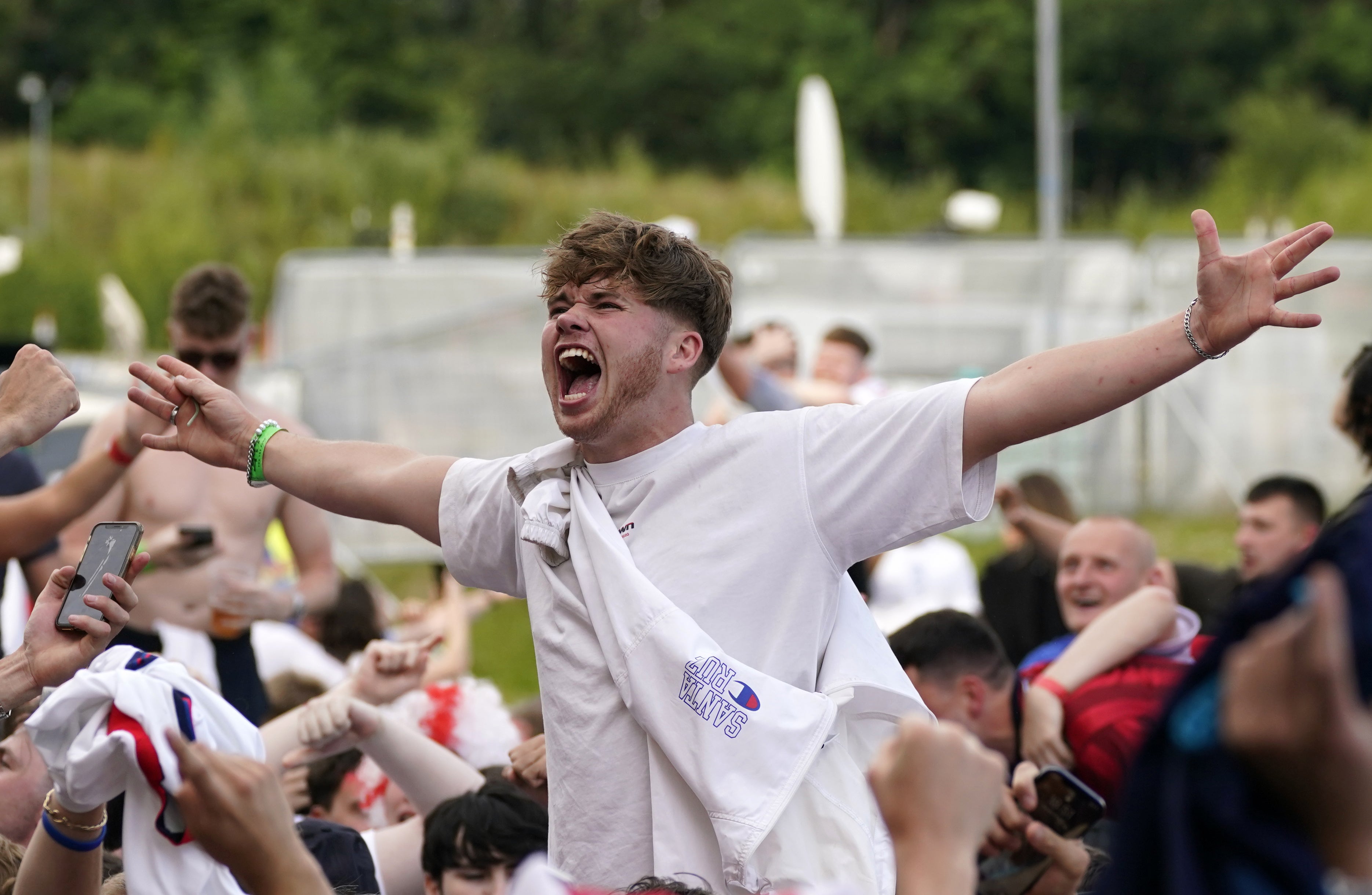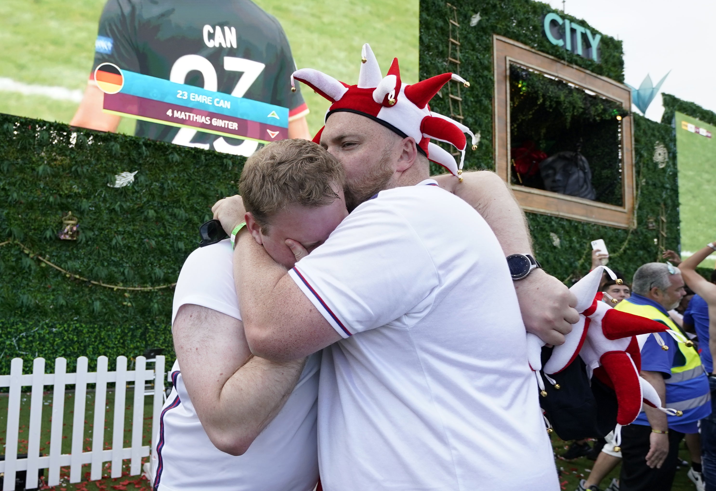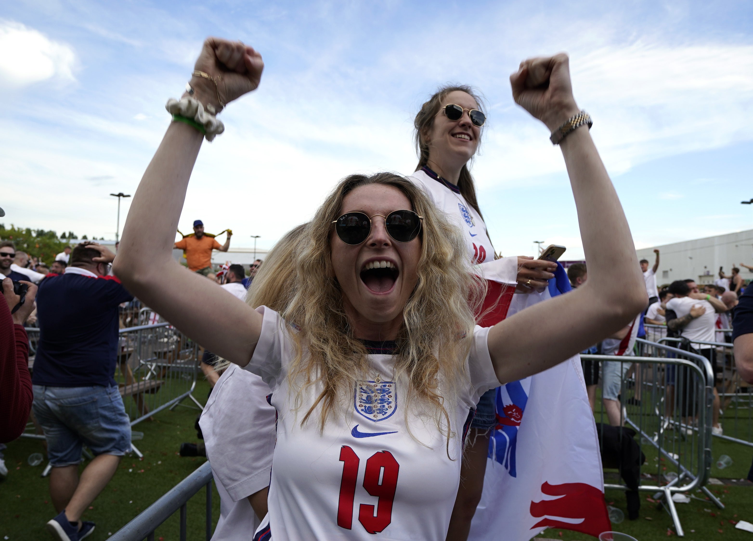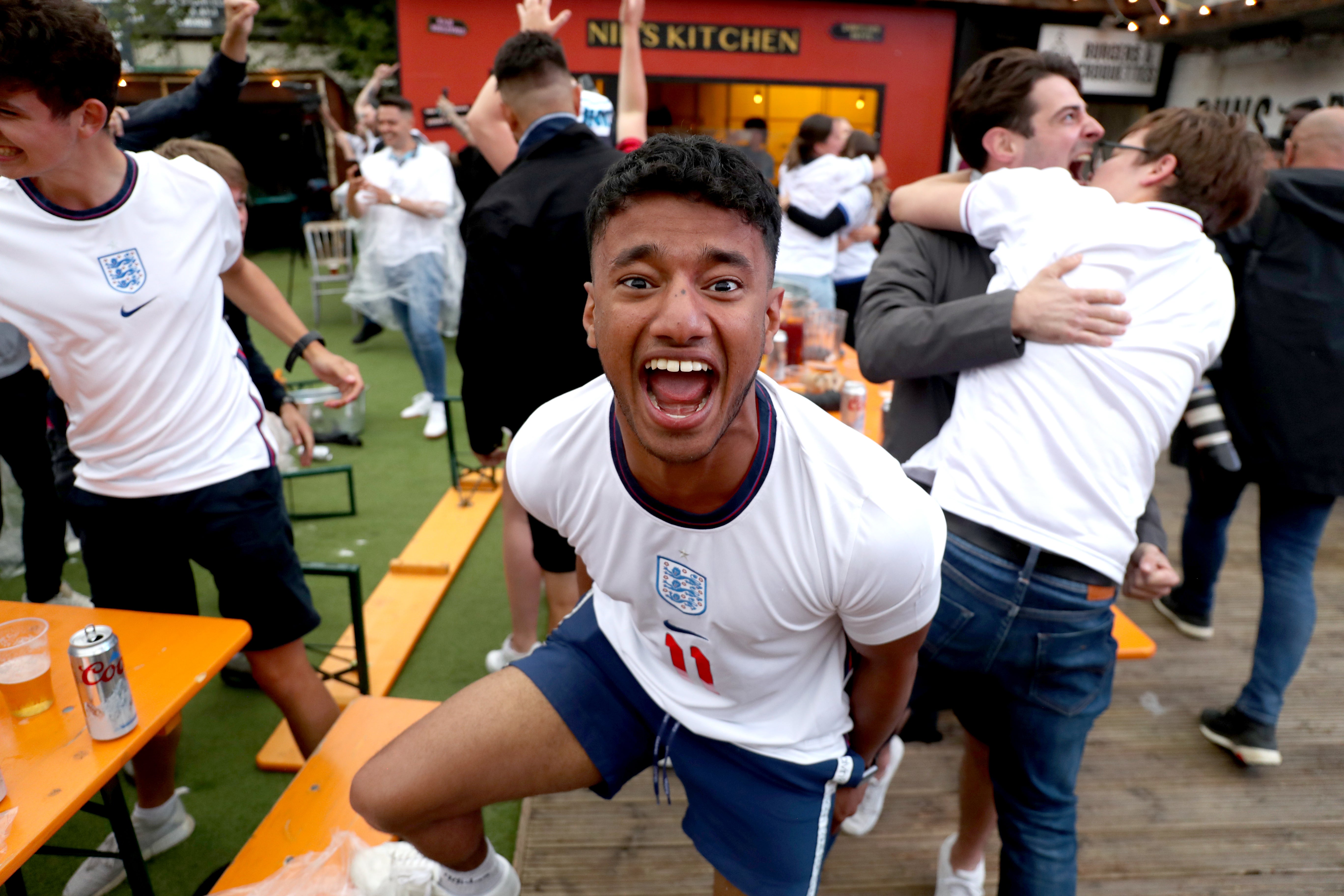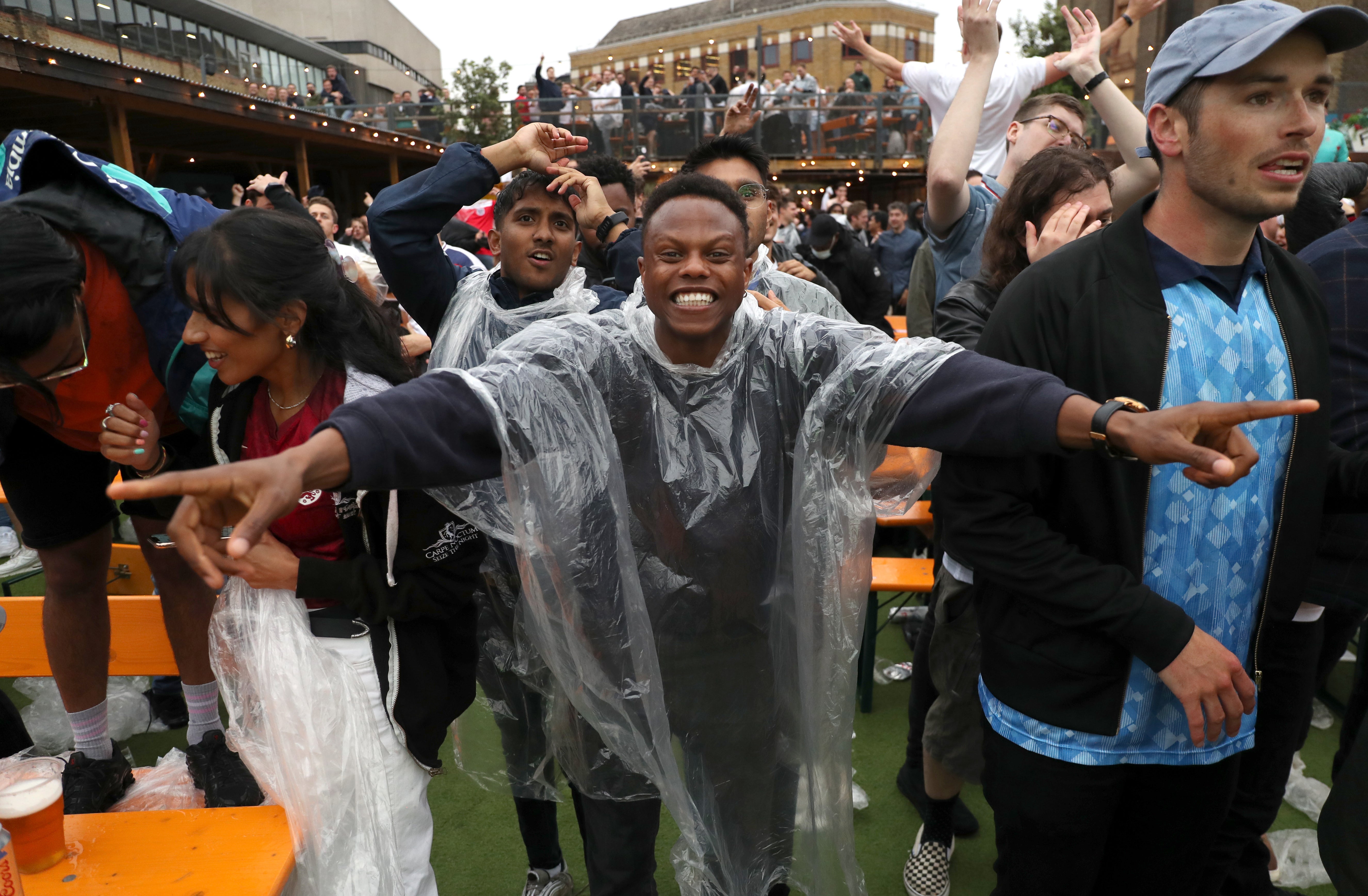 Inside the stadium, there were 40,000 supporters, including many famous faces. But the atmosphere was just as electric outside of Wembley in designated fan zones, pub beer gardens and parks up and down the country.