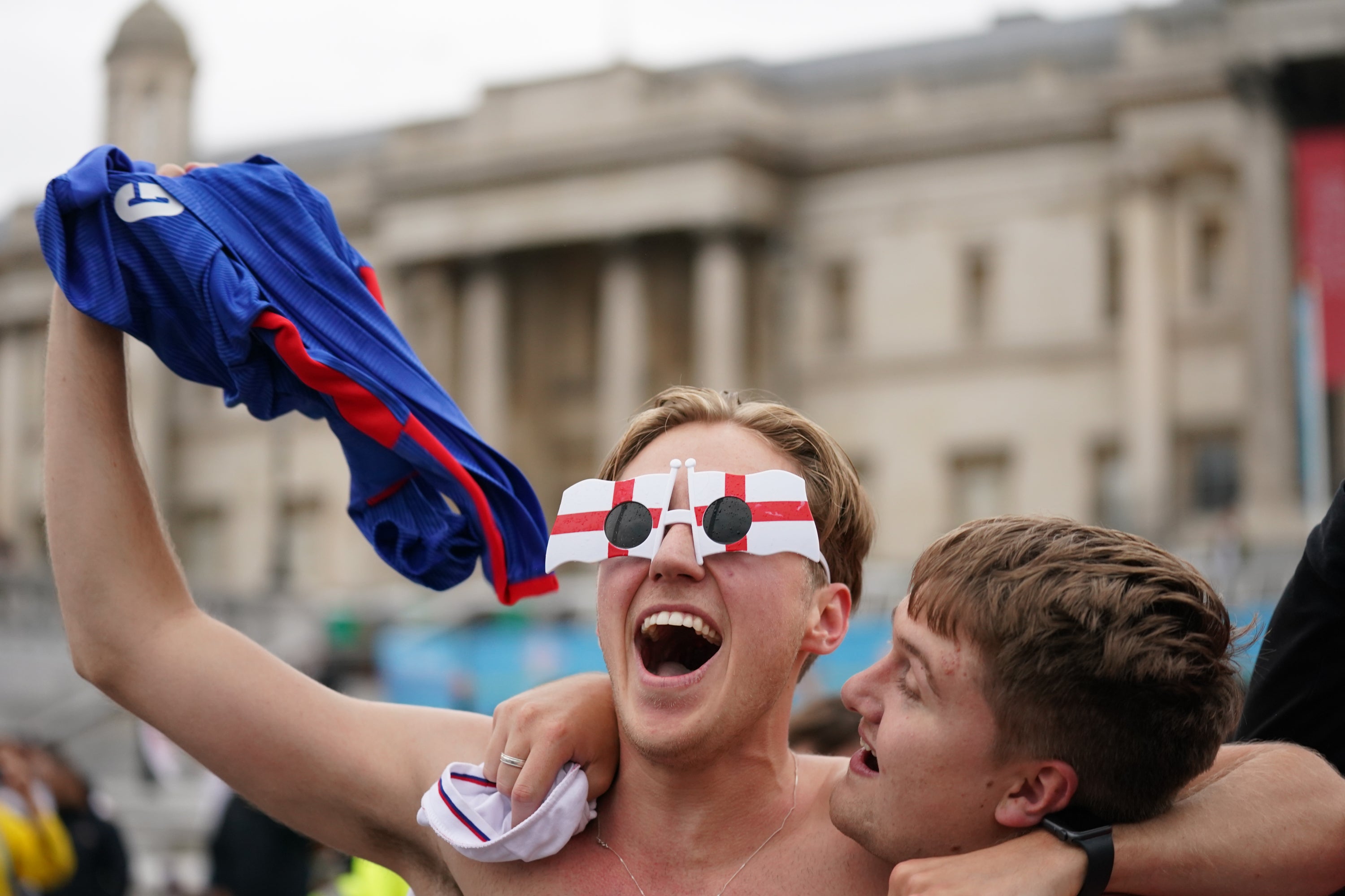 A man also climbed up on to a London sightseeing kiosk in the middle of Piccadilly Circus. He spent about 15 minutes there, took his top off and began waving it over his head. The man was then thrown an England flag which he began waving in the air. He later got down, assisted by police and fans.