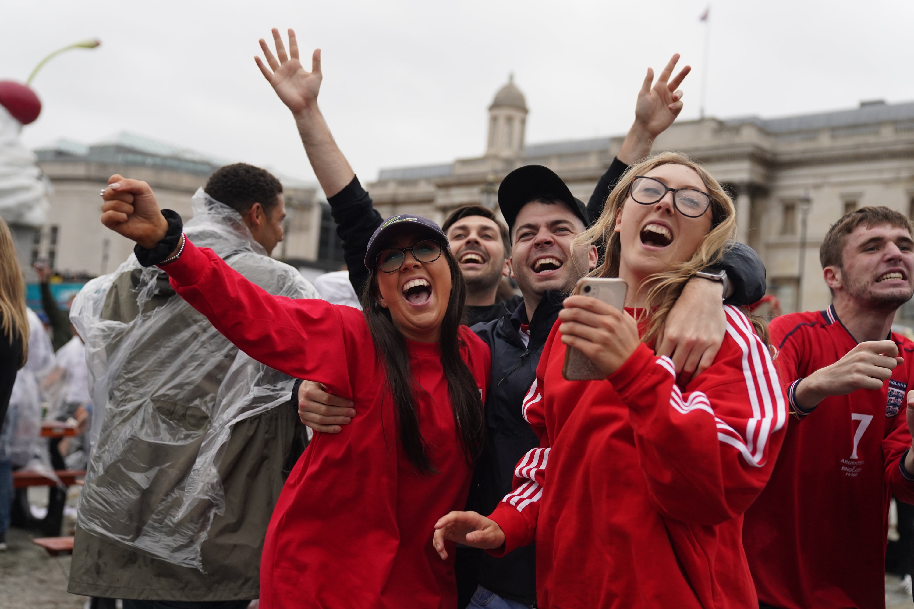 After the final whistle, fans who had watched the game in Trafalgar Square were heard shouting “come on England!” as they walked down Regent Street in London. Dozens of England supporters also climbed up on to the Shaftesbury Fountain in Piccadilly Circus where they are singing “Que sera, sera, whatever will be, will be, we’re going to Wembley, que sera, sera” and Three Lions.