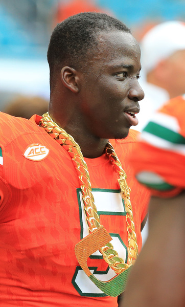 UM cornerback Michael Jackson, seventh in the country and second in the ACC with four picks, wore the turnover chain twice in the first half against Syracuse: "The jewelry is always in the back of your mind," Jackson said. "It's fun because that's the one time the spotlight is on you and you just take advantage of it."