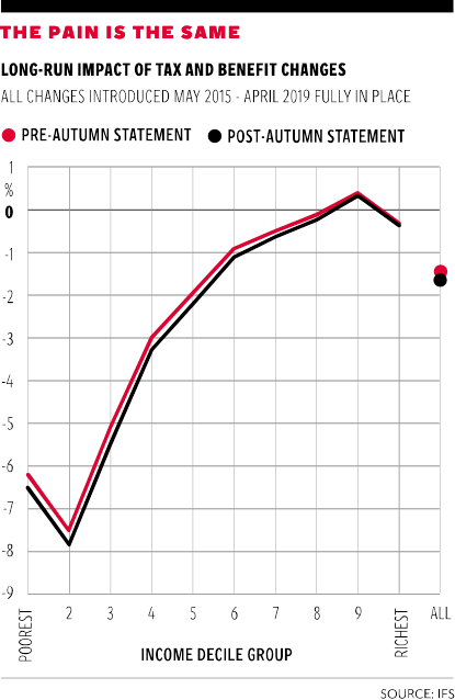 How? Because the working age welfare system will still become much less generous in five years’ time. As research from the Institute for Fiscal Studies and the Resolution Foundation has shown, the typical low-income working family in 2020 will be hit just as hard as they were going to be before the Autumn Statement U-turn. The Chancellor seems to be calculating that the pain of future forgone gains will be less politically toxic than immediate cash losses.