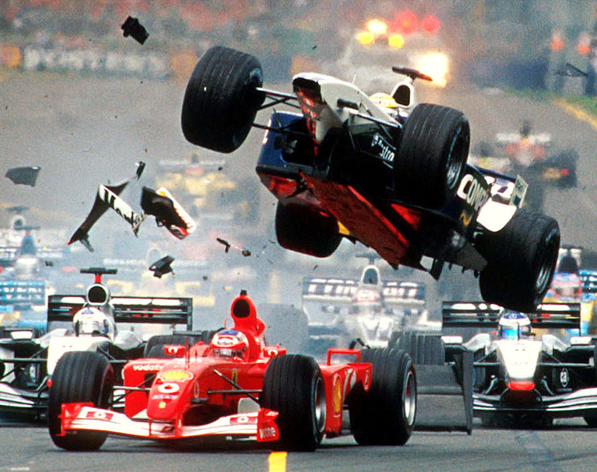 The race is infamously remembered for a frightening moment at the start of the race, when Ralf Schumacher was launched into the air after crashing into the back of a Ferrari.