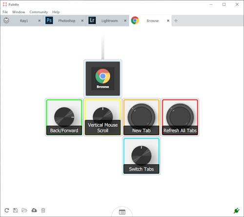 The controller blocks also work with some non-Adobe apps, too. Google Chrome, Spotify, and VLC Player are a couple I’ve created custom profiles for. In Chrome, I’ve got push buttons mapped to commands like refresh (Control+R), reload all tabs (mapped to the extension keyboard shortcut) and a knob set to scroll a page vertically. The modules can be programmed for system functions as well so you can control the volume or media with a turn.