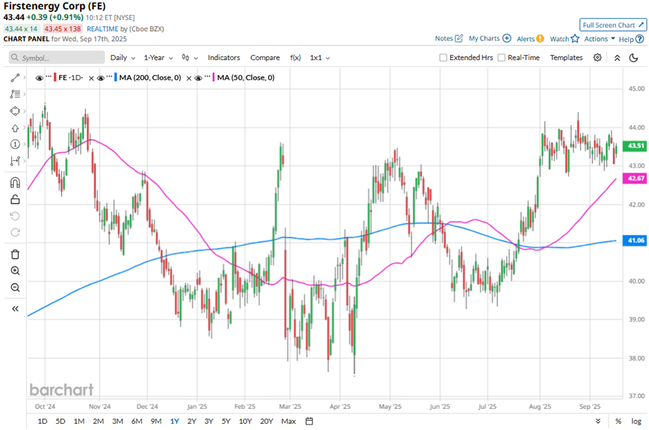 Shares of FirstEnergy rose 2.2% after Q2 2025 results as adjusted EPS of $0.52 beat the consensus estimate, marking year-over-year growth despite weather-related demand softness. Investors were encouraged by a 52.7% jump in operating income to $646 million and a 4.5% decline in operating expenses to $2.73 billion, which offset slightly weaker-than-expected revenues of $3.38 billion.