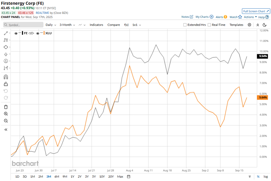 Shares of the Akron, Ohio-based company have dipped 2.3% from its 52-week high of $44.58. Shares of FirstEnergy have risen 9.6% over the past three months, outperforming the Utilities Select Sector SPDR Fund's (XLU) 5.8% rise during the same period.