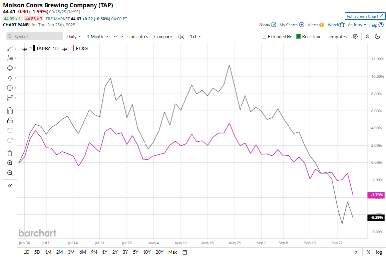 Molson’s performance has remained mixed over the longer time frame. Molson’s stock dropped 22.5% in 2025 and declined 18.7% over the past 52 weeks. In contrast, FTXG has dipped 7.9% on a YTD basis and 16.7% over the past year.