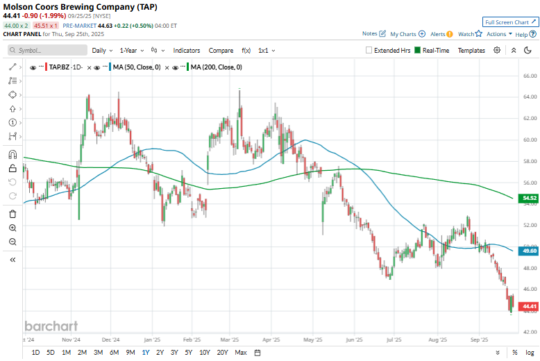 On Sept. 12, Molson Coors shares declined over 1% after Barclays plc (BCS) downgraded the stock from “Equal Weight” to “Underweight.” The downgrade reflected the firm’s cautious outlook on the company’s near-term growth prospects, citing potential headwinds in the U.S. beer market, slower-than-anticipated premiumization trends, and pressure from rising input costs.