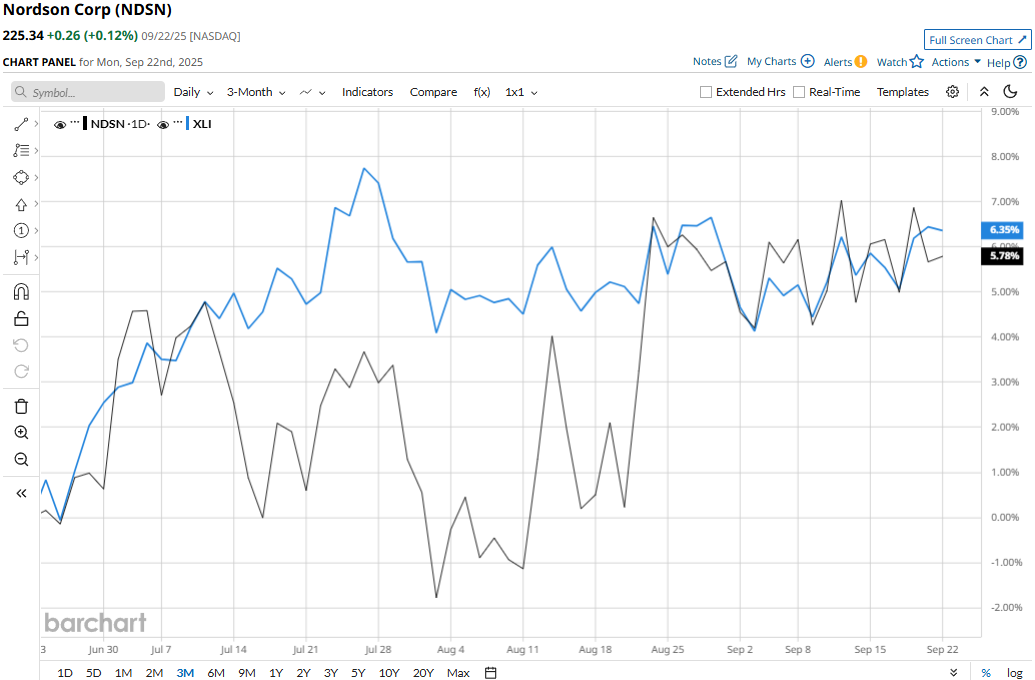 Moreover, when compared to its peer, Nordson has notably outperformed Ingersoll Rand Inc.’s (IR) 9.6% decline in 2025 and 15.5% plunge over the past 52 weeks.