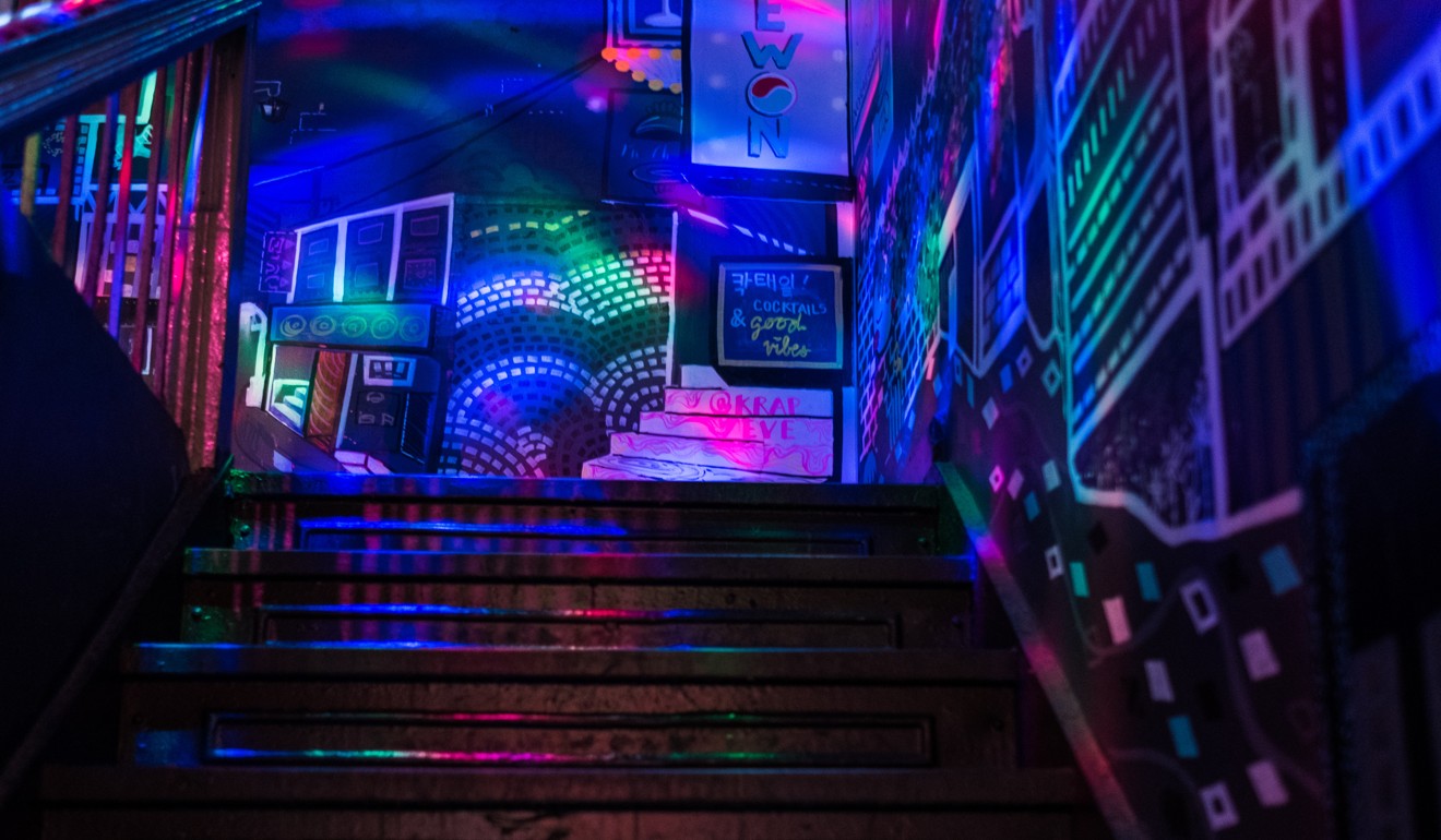 It’s a Wednesday night, and too early for partying, yet the air is heavy with the smell of cigarettes smoked on previous evenings. A young Korean woman wearing an off-the-shoulder top sits alone in one of the karaoke booths. Too bored to look up, she plays on her phone as a huge screen blasts a K-pop classic. Another girl in high heels and a miniskirt walks past and disappears to the back of the bar.