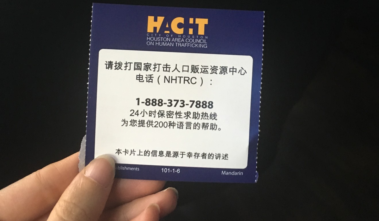 “They usually come to Houston through connections in Los Angeles and New York, so whenever you talk to them, they just disappear,” Rossiter says. “It stretches back to their home country. They have families there and I don’t think they want to jeopardise it, so they won’t say anything. I think they don’t talk because they are dearly afraid. Also, it’s a shame-based culture.”