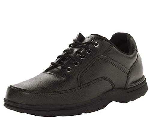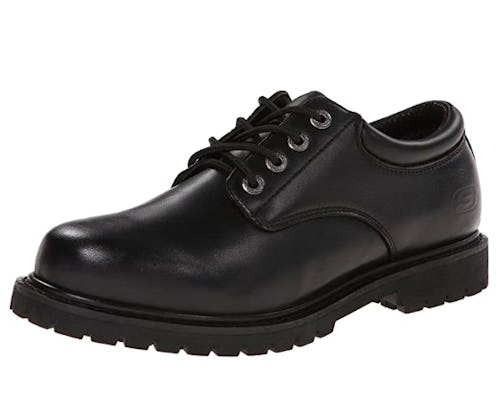 Stand taller at work and feel sturdier on your feet by wearing these slip-resistant work shoes that have a 1.25-inch heel and lots of traction. The memory foam insole is ultra comfy. They look good, too, in a simple Oxford style with silver rivets for the laces.