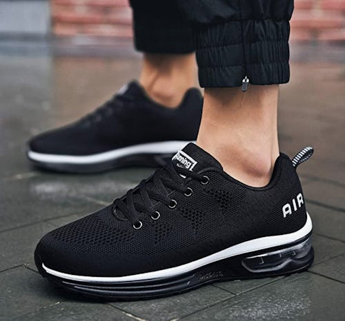 The air-cushion soles on these lightweight athletic shoes give your stride significant bounce — and lift — without adding weight. The knit uppers are stretchy and ultra-comfortable and the laces make for a perfect fit. They have a modern, Nike-inspired look without the Air price tag.