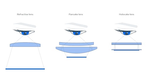 To shrink the overall size, Holocake 2 trades a traditional curved lens for a “hologram of a lens,” to borrow Zuckerberg’s description. Holographic lenses are slimmer and flatter than normal lenses, but still direct light in a consistent pattern. Combined with “polarization-based optical folding” (what’s sometimes called “pancake optics”) the Holocake 2 is slim while delivering the same performance as Quest 2, only tethered to a PC.