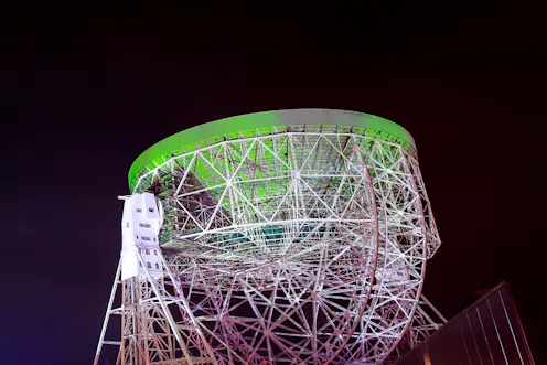 It pretty much started with an email – the modern door knock – from my colleague Tim O'Brien asking if I would discuss my research with an artist who had been commissioned to create an art experience which would be projected onto the Lovell radio telescope as part of the bluedot festival at the observatory. My immediate answer was yes; who would turn down the opportunity to see their work projected on a structure the area of 20 standard IMAX screens?