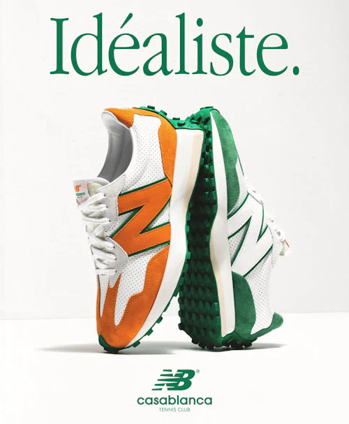 With Casablanca, New Balance is debuting an entirely new silhouette in the 327. Grondin says the team at New Balance sees the shoe as having a “twisted ‘70s look” but had a difficult time finding the right partner to work on it. Casablanca, which he first discovered via wheatpaste posters during Paris Fashion Week two years ago, ended up making perfect sense. The brand looks like its founder, who’s been named an LMVH finalist this year for his work at Casablanca. Both look straight out of a beach resort with vibrant colors and prints; a hint of dirtbag, but an oh-so-seductive one.