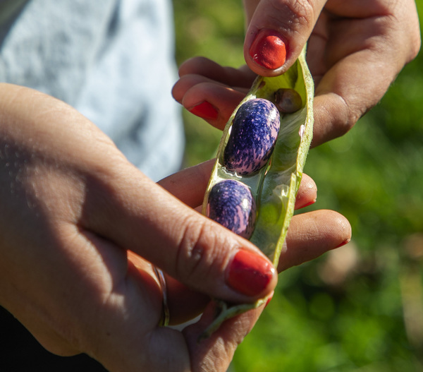 But back to the bean tunnel — not to be confused with the bean teepee, which, earlier that morning, a K-4 special-education class had cleared free of the bright red and purple scarlet runner beans that climbed their way up the poles.