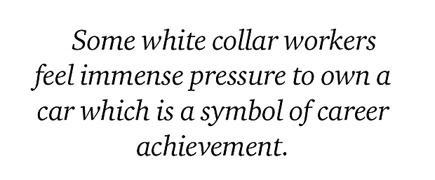 In fact, some white collar workers feel immense pressure to own a car which is a symbol of career achievement.