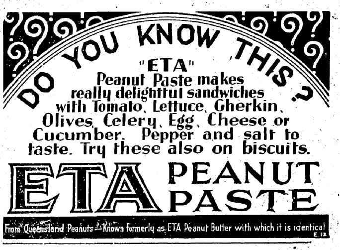 An ad for ETA Peanut Paste published in the Warwick Daily News in October 1930. Supplied: Goodman Fielder