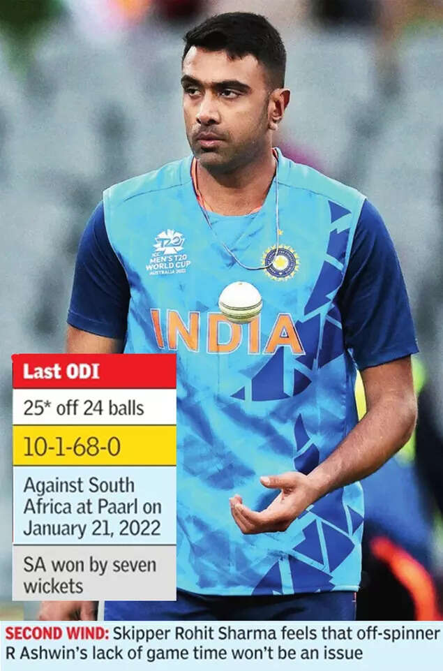 A seasoned campaigner, Ashwin has been training for the past week at the National Cricket Academy in Bangalore with spin coach Sairaj Bahutule. However, there are genuine concerns around his lack of game time in the ODIs. For Rohit, a known backer of Ashwin over the years, that hardly seemed to be an issue.