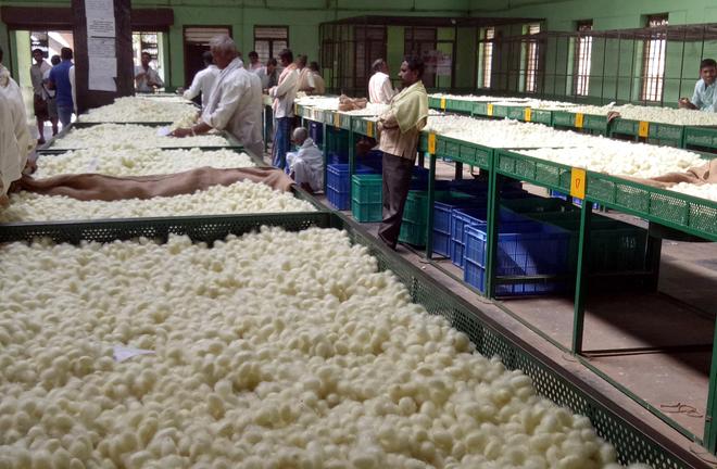 Scientists at Central Sericultural Research and Training Institute (CSRTI) in Mysuru, which is pioneering research in tropical sericulture, pointed out that India has managed to increase raw silk output by almost 13,000 metric tonnes during the last decade, bringing down its reliability on imports from China, on account of two main reasons – high yielding variety of mulberry plants and superior quality bivoltine cocoon breeds.