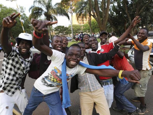 At this point two friends, who had come running, draped a Zimbabwean flag around his head. “The time to worry about all that will come later, Sammy,” said Amanda Katsande. “We need to enjoy ourselves tonight. This will be a time everyone will remember. Zimbabwe does not make news for that many good things. But what happened today is really good; we have shown we can bring change to our country.”