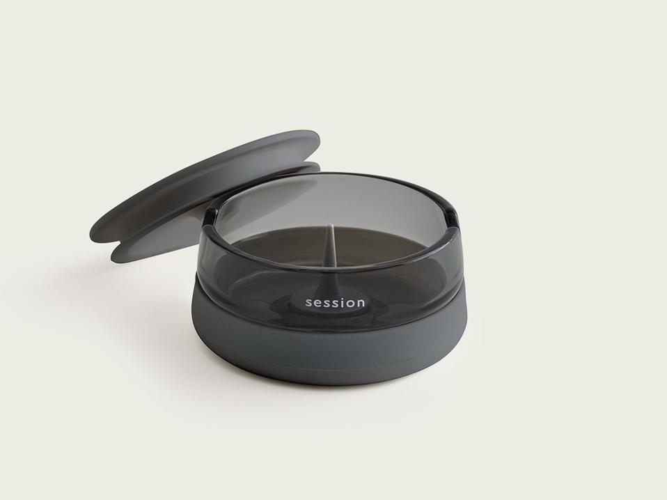 Following the July launch of the already sold-out One Hitter ($12) — the perfect, pocket-sized pick for tiny tokes or solo-sessions on-the-go — Session Goods is readying for the release of an Ashtray ($40) and Stash Jar ($40) next month. The entry into two new product categories is a streamlined solution to keeping your flower fresh and table ash-free (plus, it holds your joint perfectly in place).