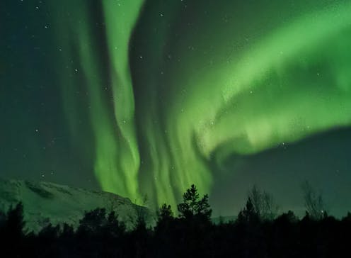 The Sun constantly sends us electromagnetic radiation, but also particles known as the solar wind. These particles are mainly electrons and protons. When large solar flares occur, large quantities of plasma (made up of charged particles) are ejected: these are known as coronal mass ejections. When these are emitted toward the Earth, they first encounter the Earth’s magnetic field, which acts like a shield to protect us from these particles. However, these particles sometimes manage to penetrate this protective barrier and interact with our upper atmosphere. This is what is known as a geomagnetic storm.