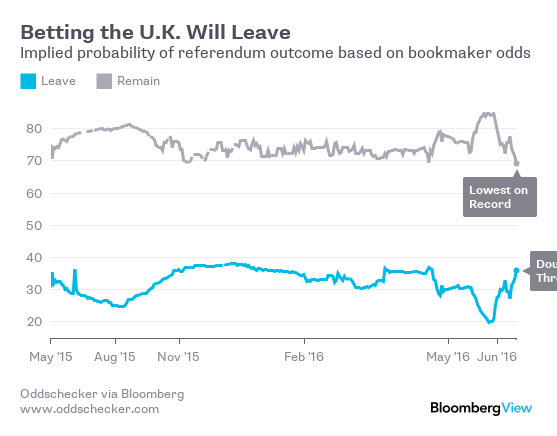 The June 23 referendum remains a coin toss. Opinion polls, discredited anyway after failing to predict the outcome of last year's election, show Europhobes and Europhiles neck-and-neck. In the gambling world, which is perceived to have done a slightly better job at the last general election, the “remain” campaign has been losing ground to the “leave” brigade in recent weeks: