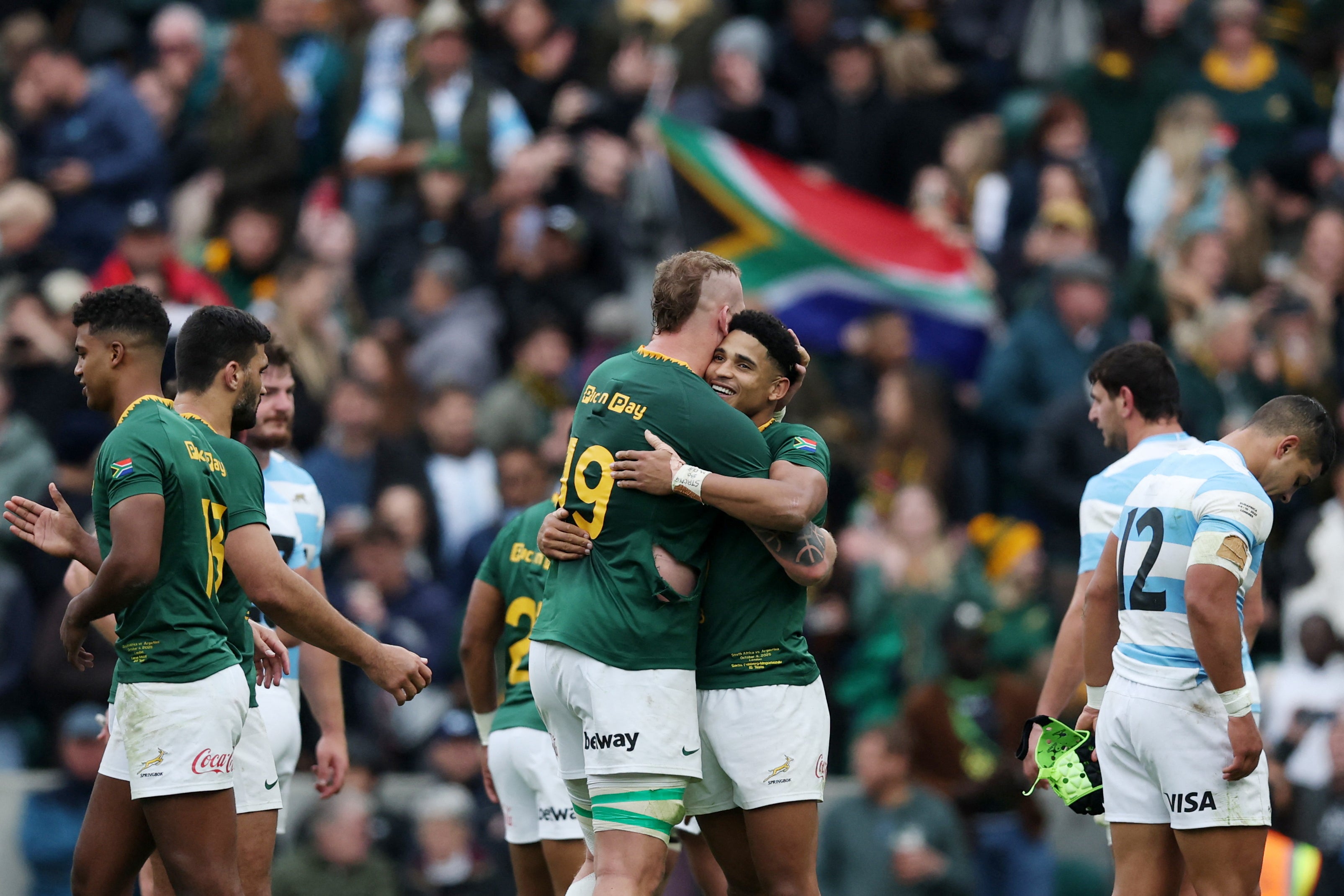 “You can definitely feel them, especially when things don’t go your way,” two-try scrum half Cobus Reinach hailed of the support after South Africa prevailed 29-27 to retain their Rugby Championship crown. “There were a c***-load of them out there, and we play the game for them and our country back home.”