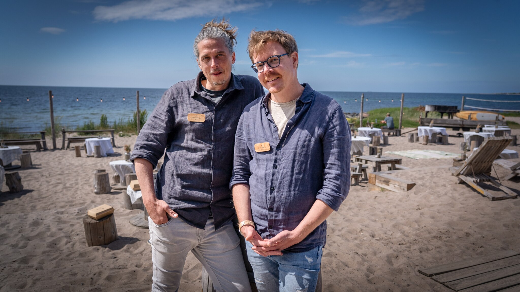 They sit side by side at a table of their surf lodge in Tofta, built on a sand dune on the Gotland coastline.