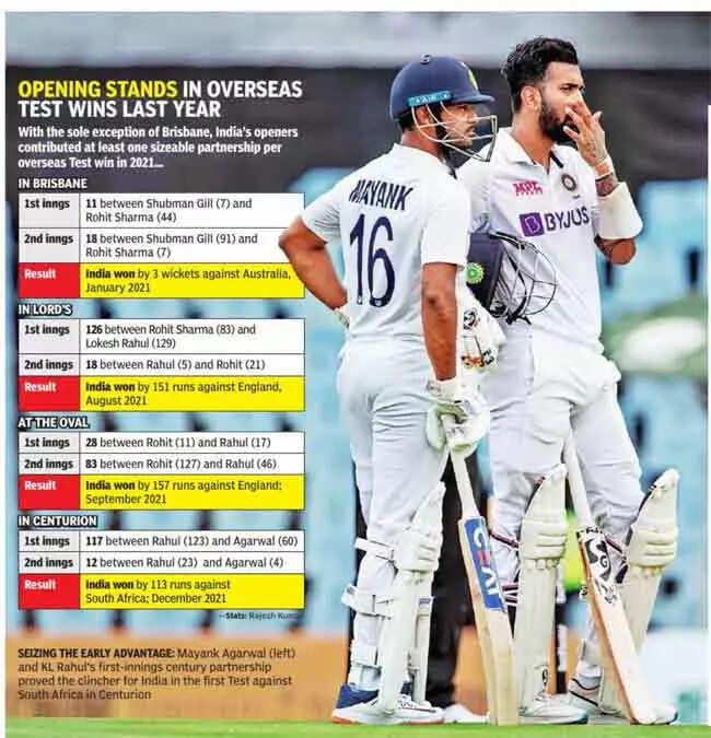 Starting from England, where India led the series 2-1 before Covid forced a postponement of the fifth Test, to Centurion, the one pattern that has emerged in India's overseas wins is the success of their opening partnerships.