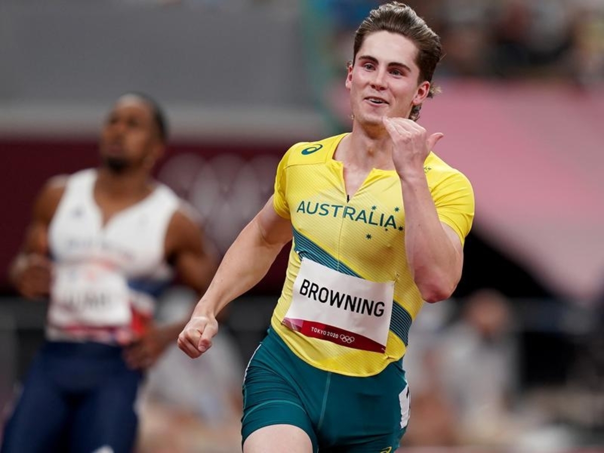 Men's 100m Round 1 - Rohan Browning - won heat, advanced to semi-finals