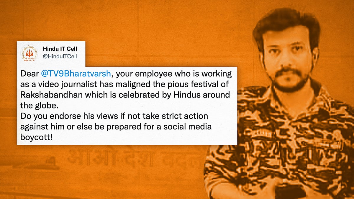 The Hindu IT Cell soon pounced on Tanveer’s tweet, tagging TV9 Bharatvarsh about their staffer, who they alleged had “maligned the pious festival of Raksha Bandhan which is celebrated by Hindus around the globe”.