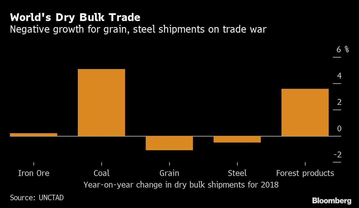 Around 2% of global maritime trade has been affected by the trade war, Frida Youssef, the chief of the transport section of the trade logistics branch and one of the report’s author’s, told reporters at a briefing in Singapore on Wednesday. “To change the supply chain is not easy for the shipping industry and will require further investment.”