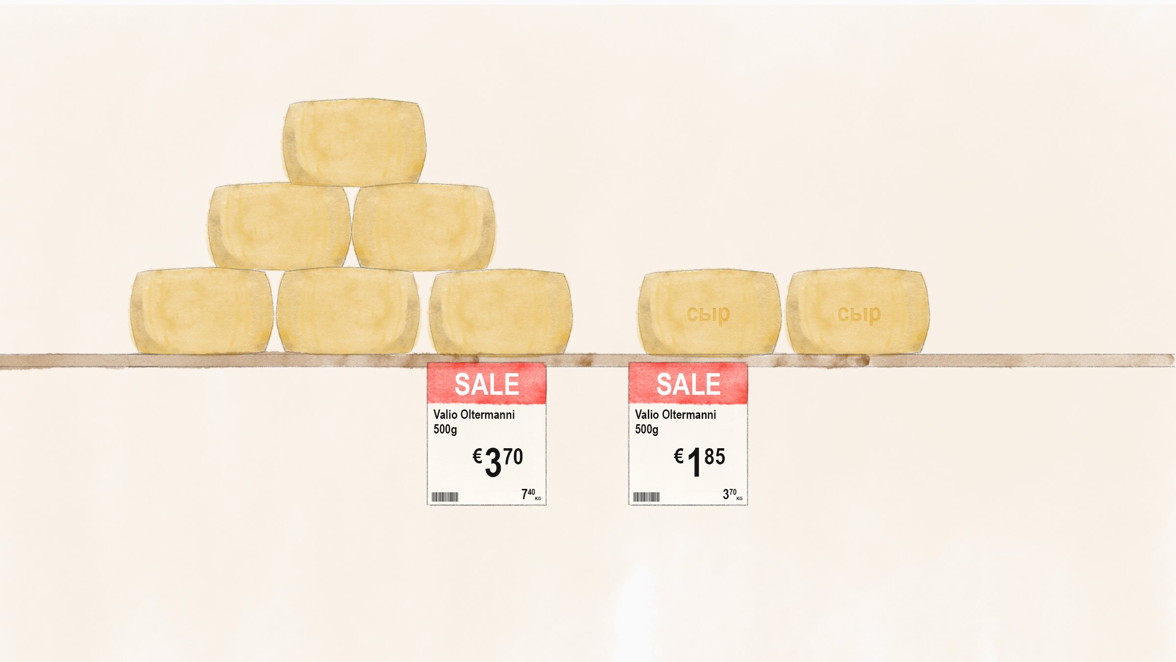 Farmers were forced to offload their Russian-branded cheese alongside other locally-produced cheeses but for a fraction of the price — Finnish shoppers would later call it "Putin cheese".