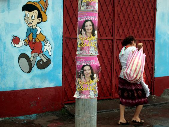 He's almost never alone in those ads: Accompanying Ortega is the smiling visage of his first lady, spokeswoman and now running mate, Rosario Murillo.
