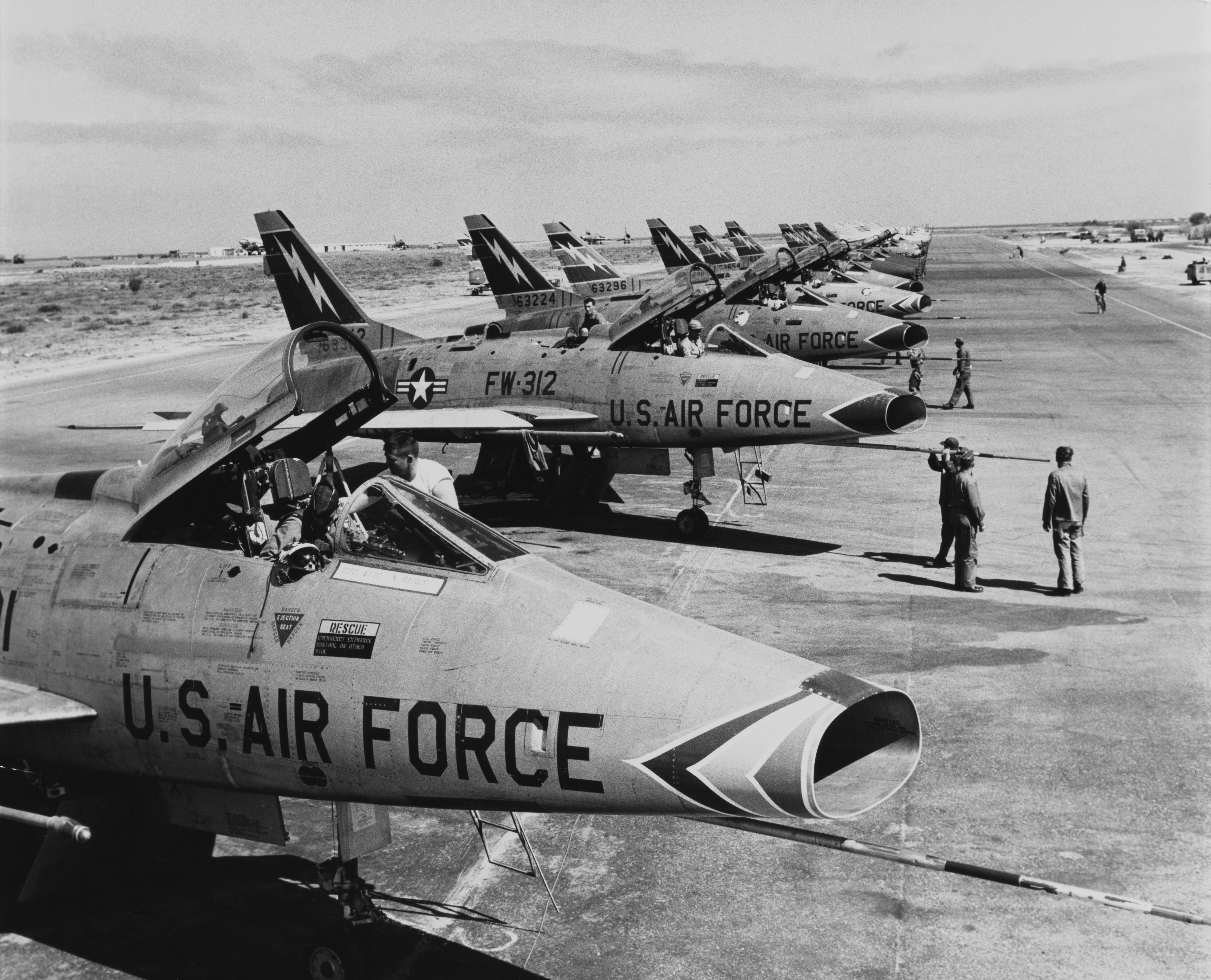 The U.S. and Soviet Union were quick to their respective drawing boards, with the first U.S. Fighter jet capable of level supersonic flight, the F-100 Super Sabre, making its debut in 1954.