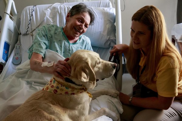 Karen Keenan, Viansa's handler and a nurse herself, said that being in the hospital is often a difficult time in a person's life, scary for both the patient and the family. A dog can offer comfort and unconditional love.