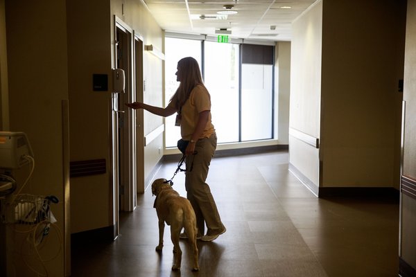 Keenan, leading Viansa through the Overlake halls on her leash, said that a nonverbal patient will get happy at the sight of a dog. A crabby patient will cheer up, making the patient more cooperative with hospital staff. One charge nurse wasn't into dogs, Keenan said. Now she stashes treats in her bottom drawer.