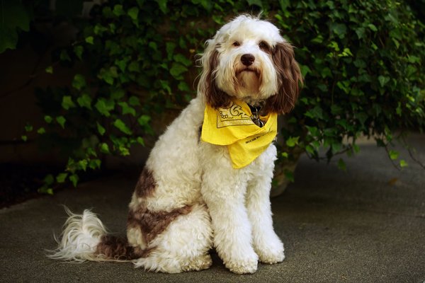 Each dog that completes the hospital training receives a yellow bandanna and an Overlake photo ID badge.