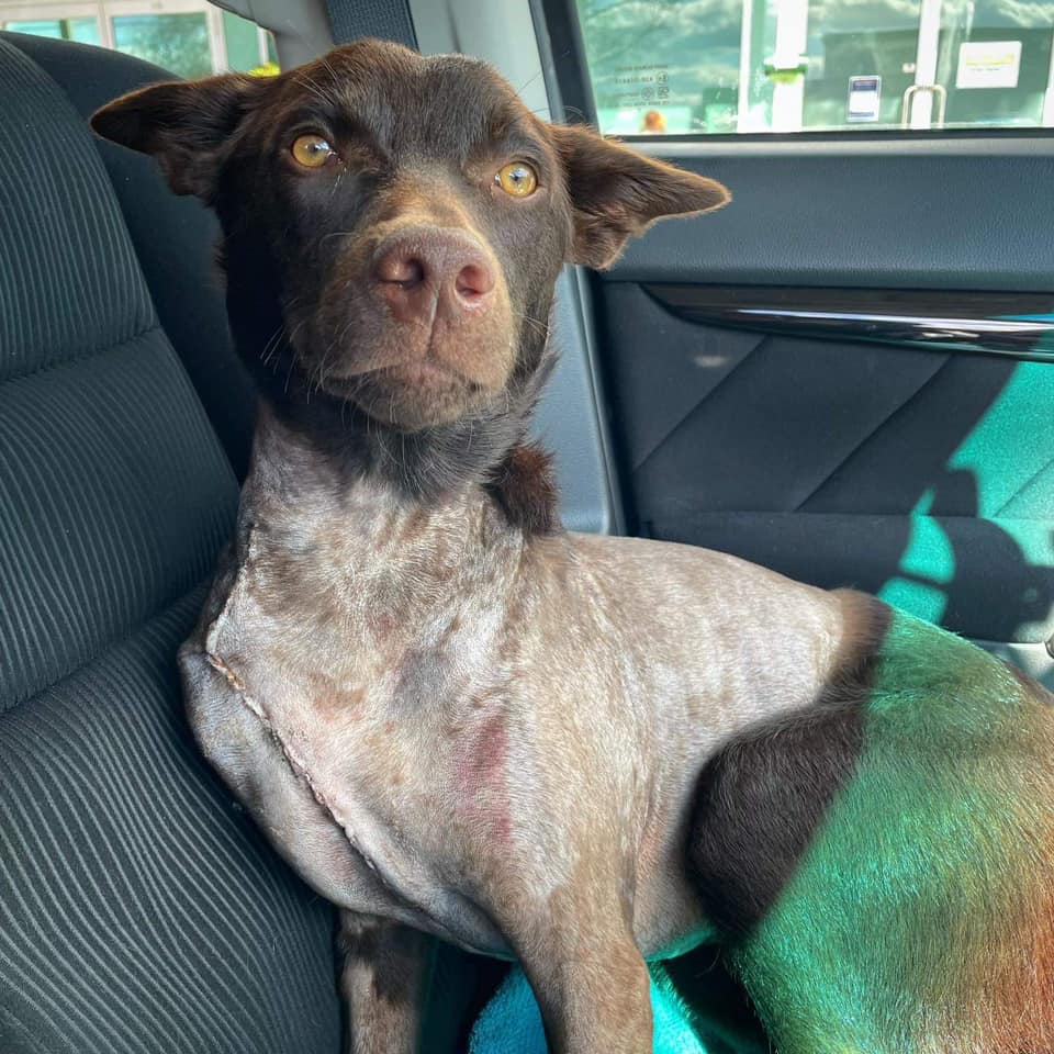 In critical condition, Pip was transported under general anaesthetic to the Animal Referral Hospital, where a scan revealed damaged tissue as deep as Pip's second rib.