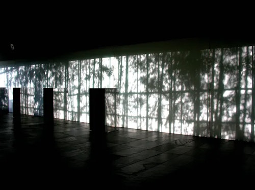 If you have a deck or balcony that receives direct sunlight, the wind-generated movements of foliage can be projected onto a translucent shade or blind to make them seem part of the interior.