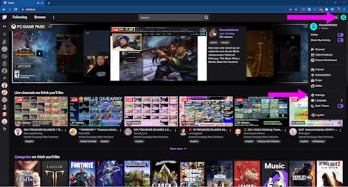 - From the Twitch homepage, click on your profile photo in the upper right of your screen.