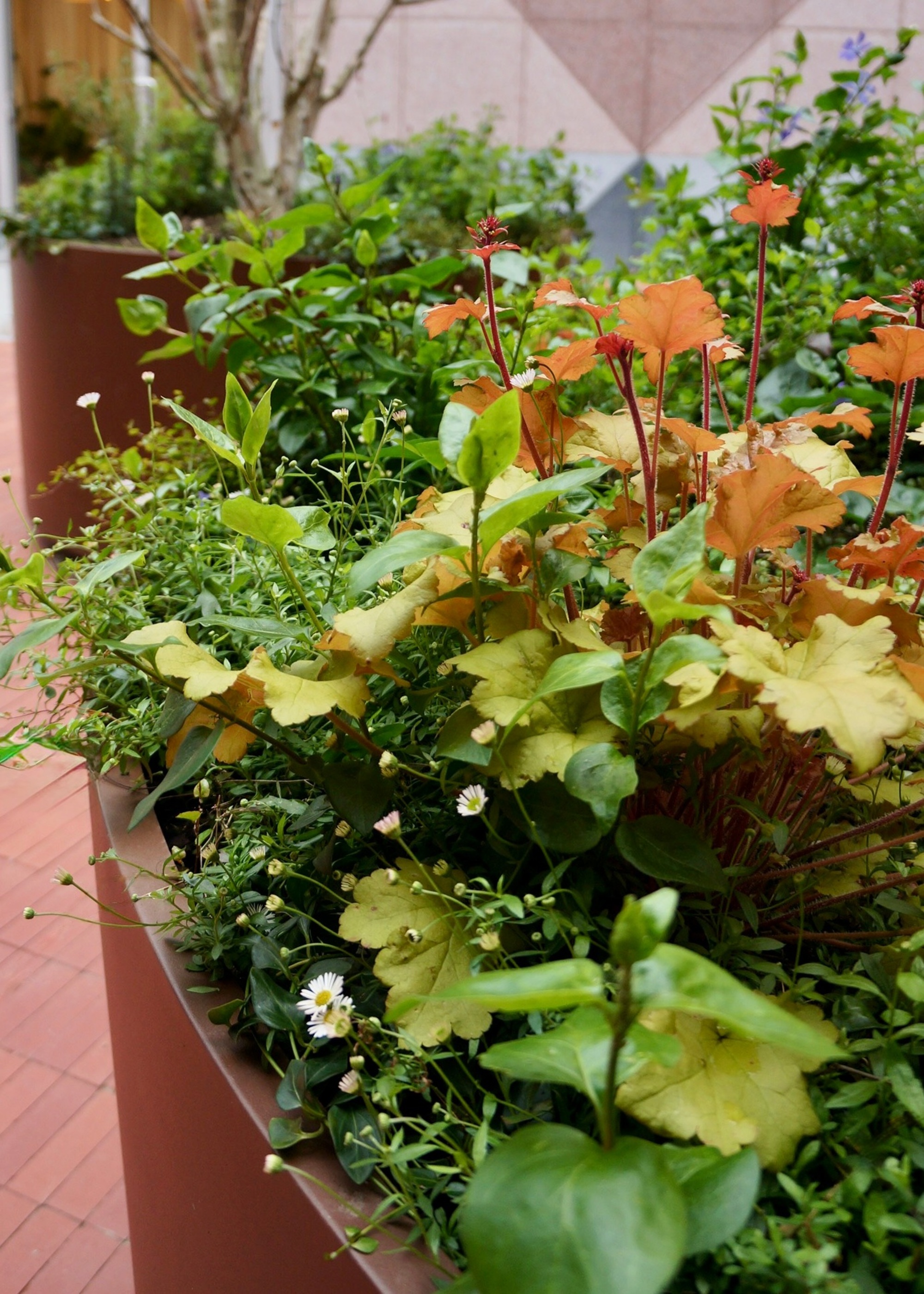 If you're wondering whether it's too late for container gardening, be assured that it's not. Although your pots will obviously need to be filled with hardy plants that can withstand a frost or winter chill, it's still possible to create a focal point or feature with planters. Consider evergreens – or for more color – foliage plants with interesting leaves, such as Heuchera.